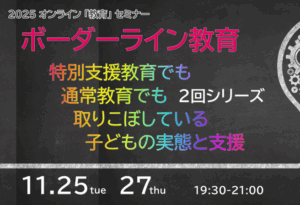 | 学習のつまずきと見立て | 学習につまずいた子どもを教材の見立てという視点から考える 子どもが宿題やテストにつまずくのは子どもが勉強してないからだと考える人が大半です。しかし、内容は理解できているようなのに課題につまずく子もいます。問題がその子にとって分かりにくい場合、まずは問題を見立て、問題を子どもに合わせてみてはどうでしょうか?ここでは様々な教材の選択や作成を通じての見立てについてお話ししてみます。 講師:井上 賞子 |